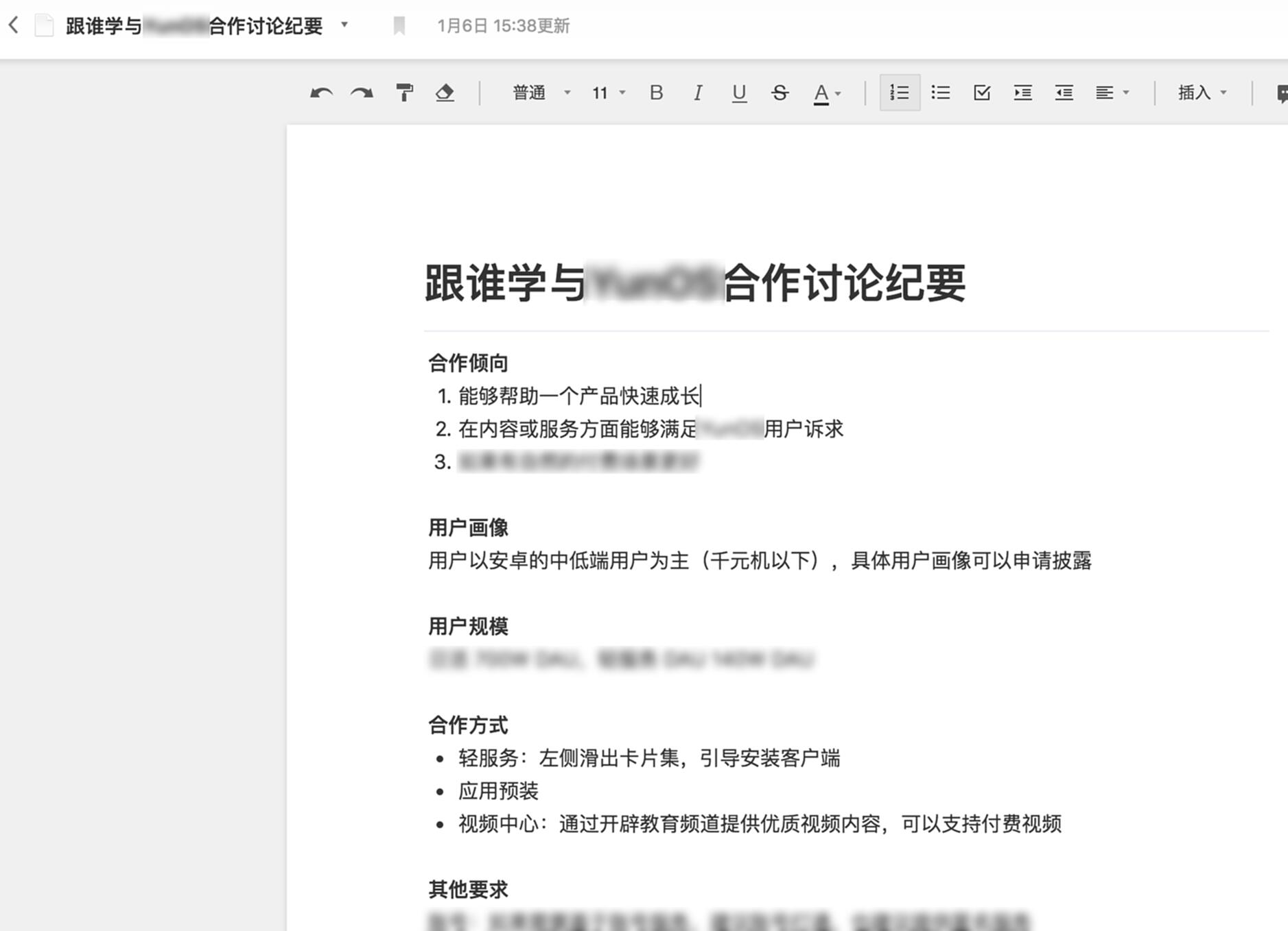 产品经理在工作中总是有各种各样的会议,需求会、评审会、功能培训等等。会议白板是会议必备工具之一,然而传统的会议白板存在一定的局限性,例如会议内容的记录整理比较麻烦、无法做到所有参会人员都能实时共用会议白板、会议内容分享不便等等。在石墨文档就像是一个云端的会议白板,可以实时记录会议流程,后续查询起来也比较方便。