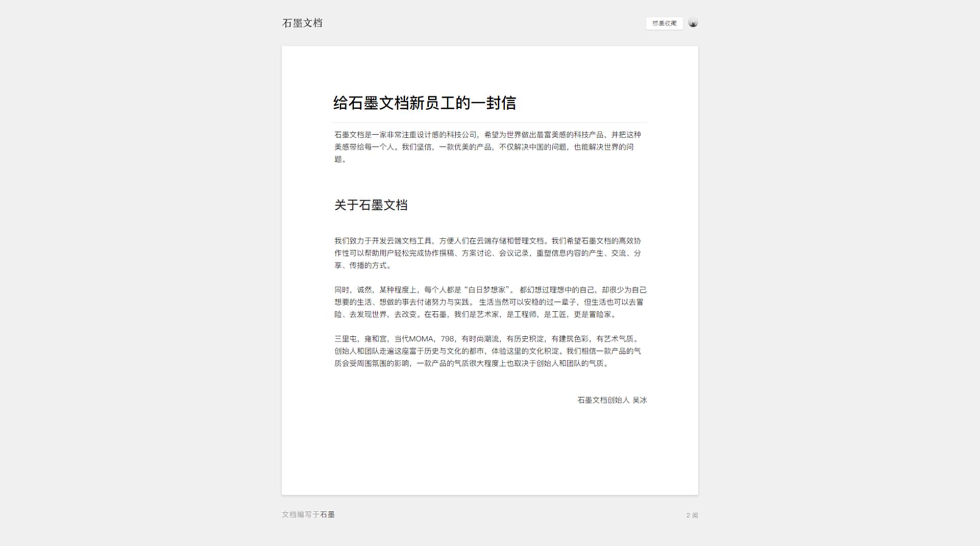 强大的企业文化可以成就一个公司,打开石墨文档,从今天开始建立你的企业文化吧。