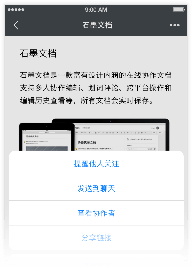 将写好的文档/表格一键发送到钉钉聊天,与同事边讨论边修改,讨论完即完成修改,极速提升工作效率。