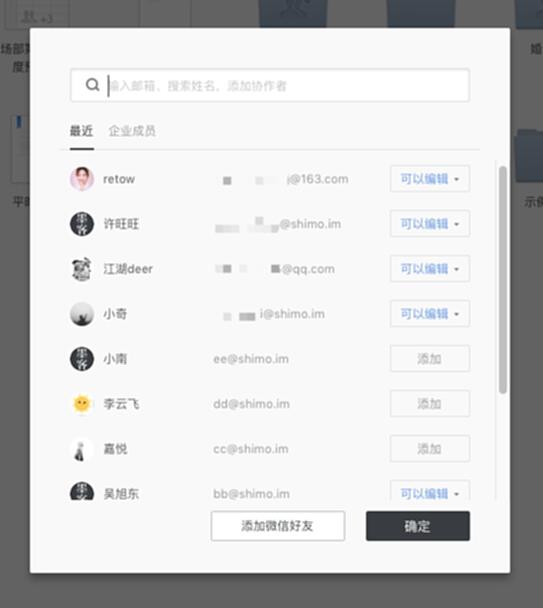 - 支持快捷添加「 最近 」使用或「 企业成员 」;